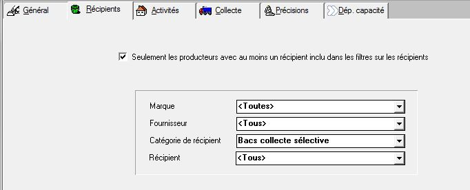 Seulement les producteurs... : si coché, seuls les producteurs dotés d'un récipient défini dans les filtres sont pris en compte.