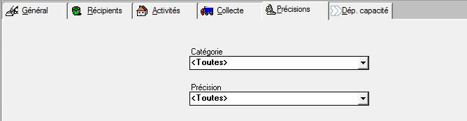 Note : une « précision »est une caractéristique définissable par l'administrateur de GESBAC, pouvant être associée à unproducteur de déchets. Voir « Précisions prédéfinies » (Catégories et Précisions) dans 14. Paramétrage général de GESBAC)