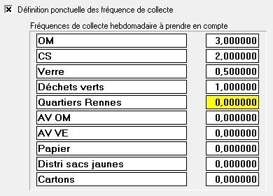 Utiliser les fréquences de collecte définies... : on se base sur ce qui est décrit au point 8.1.2. Secteurs de collecte.