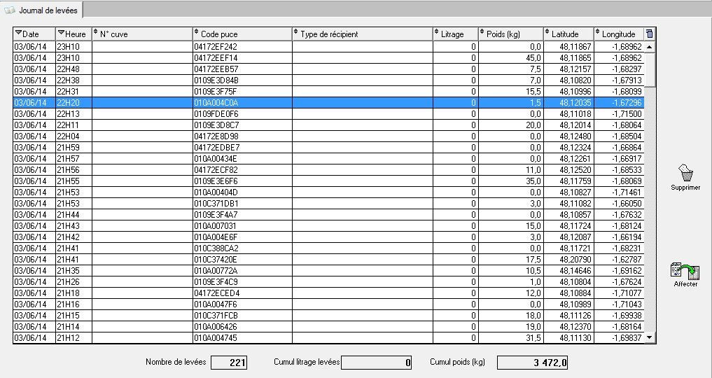 récipients orphelins lors des levées permet d'identifier des récipients réputés volés, détruits, perdus, etc.