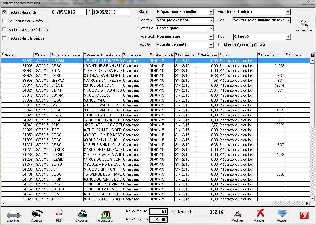 On peut ici consulter des factures, corriger celles en cours de préparation, etc.