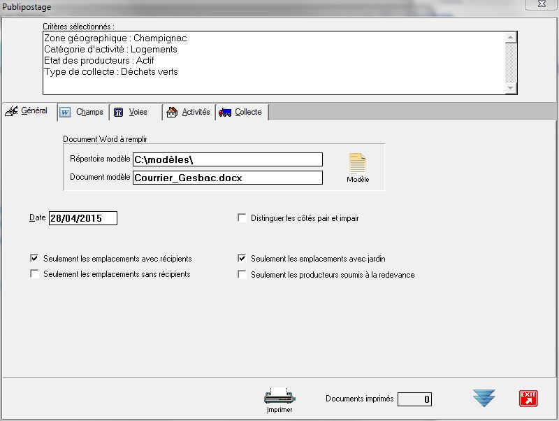 La fonction de publipostage permet l'envoi de courriers aux usagers, en fonction de critères multiples.