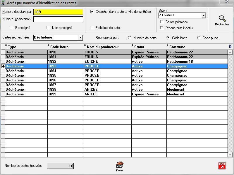 Nombre de cartes trouvées : affiche le nombre de cartes correspondant aux critères de recherche