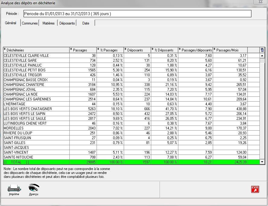 Note : Les boutons « Imprimer » et « aperçu sont présents sur chaque onglet. Voir leur usage dans l'annexe Boutons « standard ».