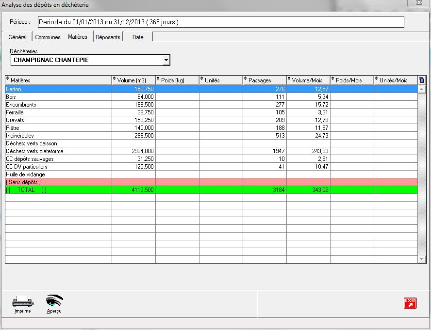 Note :  Les boutons « Imprimer » et « aperçu sont présents sur chaque onglet. Voir leur usage dans l'annexe Boutons « standard »