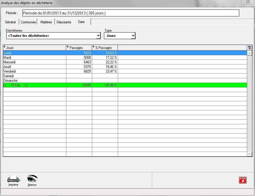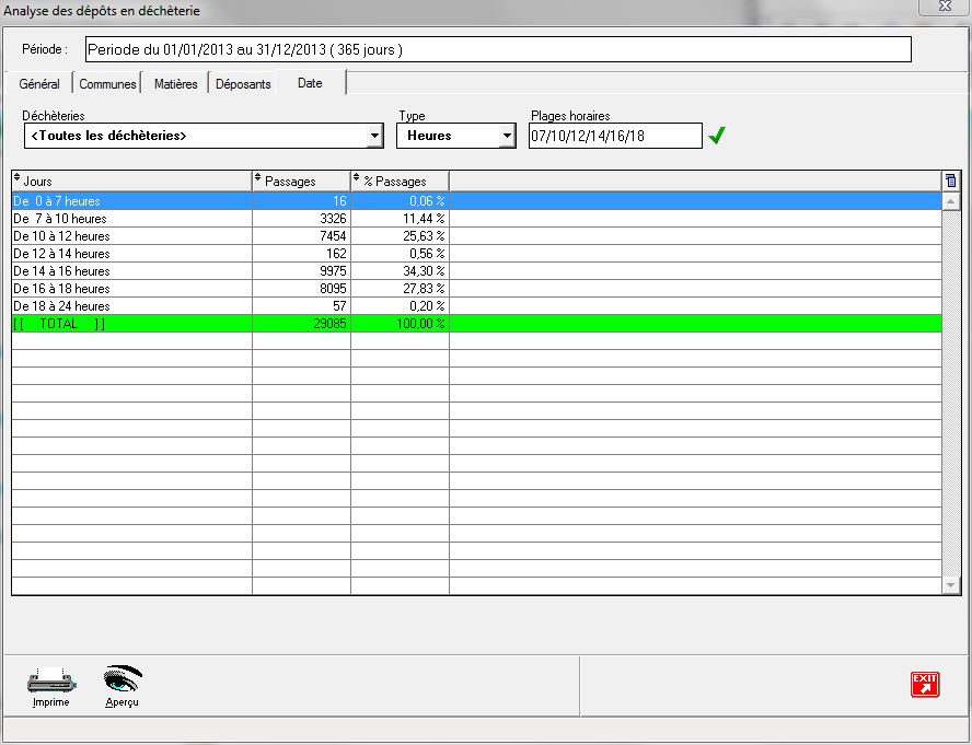 Répartition de la fréquentation des déchèteries dans le temps, par déchèterie ou pour l'ensemble.