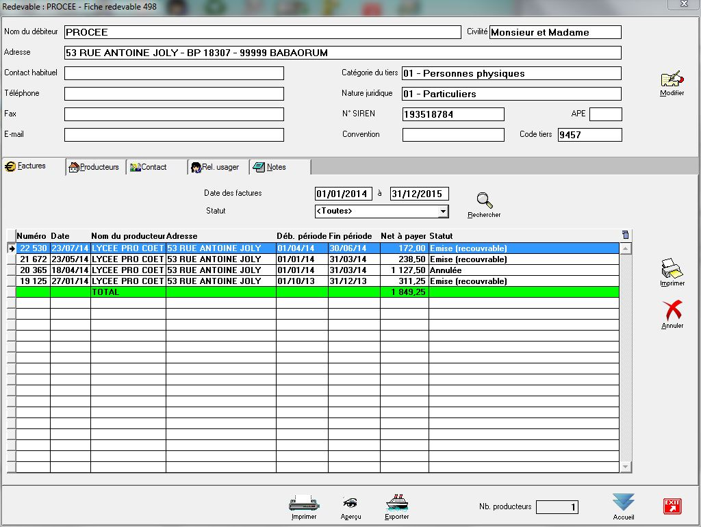 On entend par « redevable » une personne physique ou moraleà laquelle sont facturées les prestations réalisées par la collectivité.