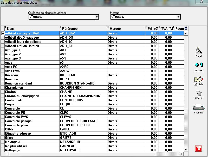 Bouton « Imprime » ou raccourci-clavier <Alt><I> : imprime la liste des pièces détachées