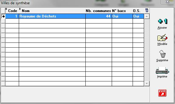 Bouton « Imprime » ou raccourci-clavier<Alt><I> : imprime la liste des villes de synthèse