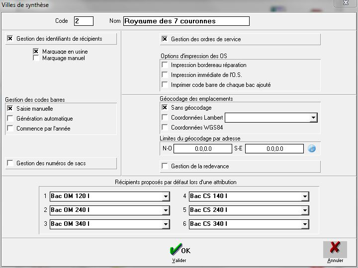 Gestion des identifiants de récipients : gestion des numéros de cuves des récipients. Si coché :