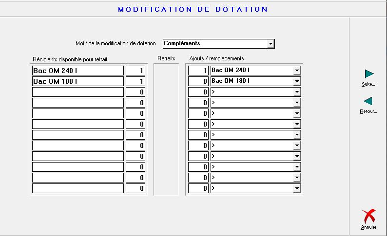 Motif de la modification de dotation : « Compléments » (nous souhaitons ajouter un récipient)