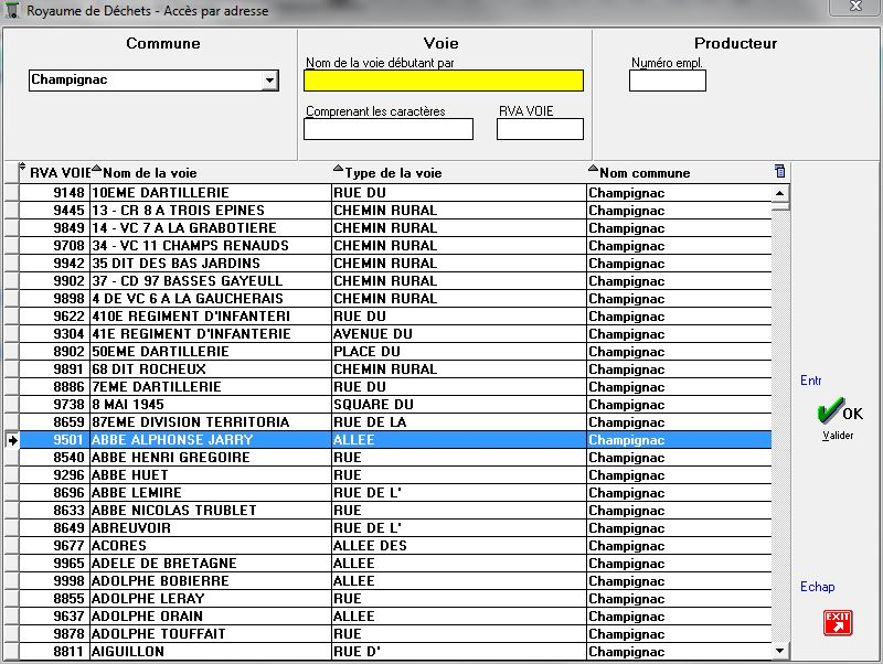Sélectionner la commune, puisla voie dans laquelle la nouvelle adresse devra être ajoutée, en suivant la procédure détaillée ici : 5.1.1. Accès par adresse.