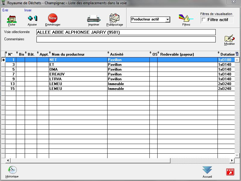 Nous obtenons la liste des adresses situées dans cette allée :