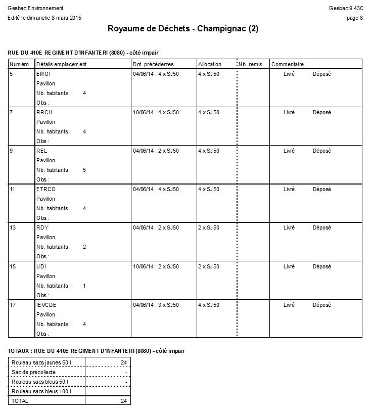 6.4.2. Document de distribution de rouleaux de sacs