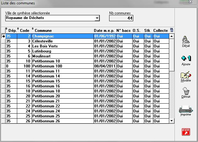 Renouvelez l'opération pour l'ensemble des communes où les stocks doivent être gérés.