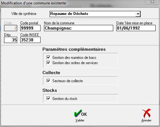 Chaque commune gérée possède ses propres paramètres. La gestion des stock doit être activée pour chacune de celles où on souhaite que cette fonction soit utilisée.