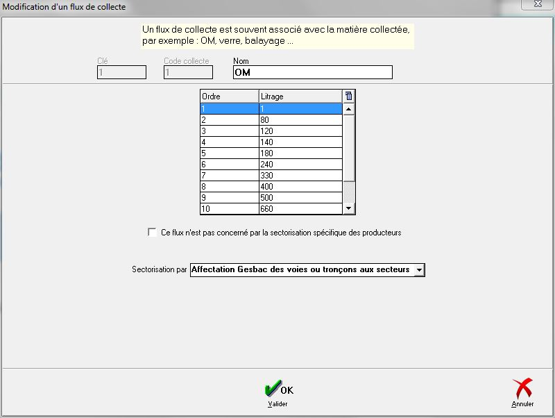 Nous constatons que des litrages sont associés au flux. Ils correspondent à ceux des récipients liés à (collectés par) ce flux.