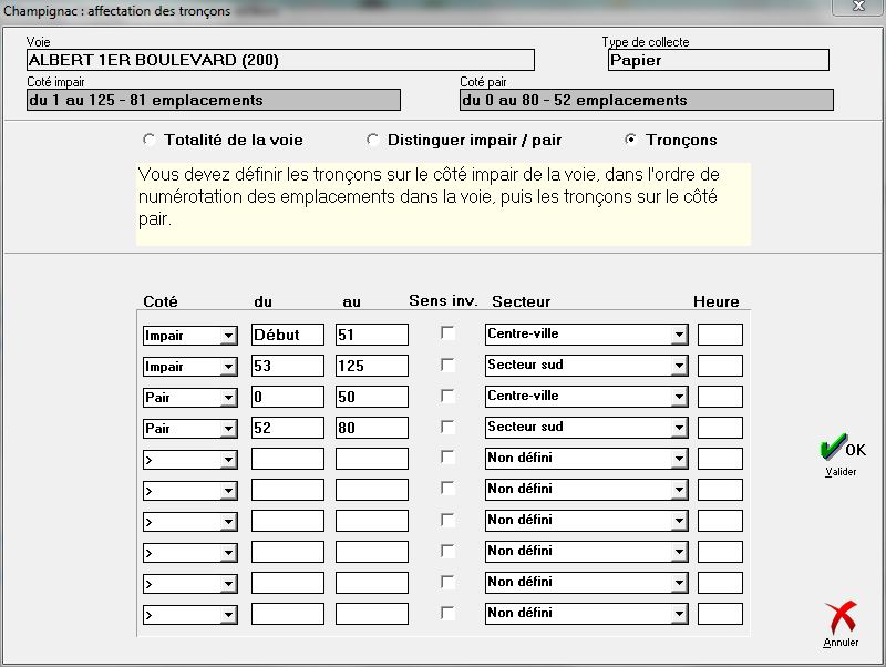 Cocher « Sens inv. » indique que la collecte s'effectue de la fin vers le début de la voie (du dernier au premier numéro)